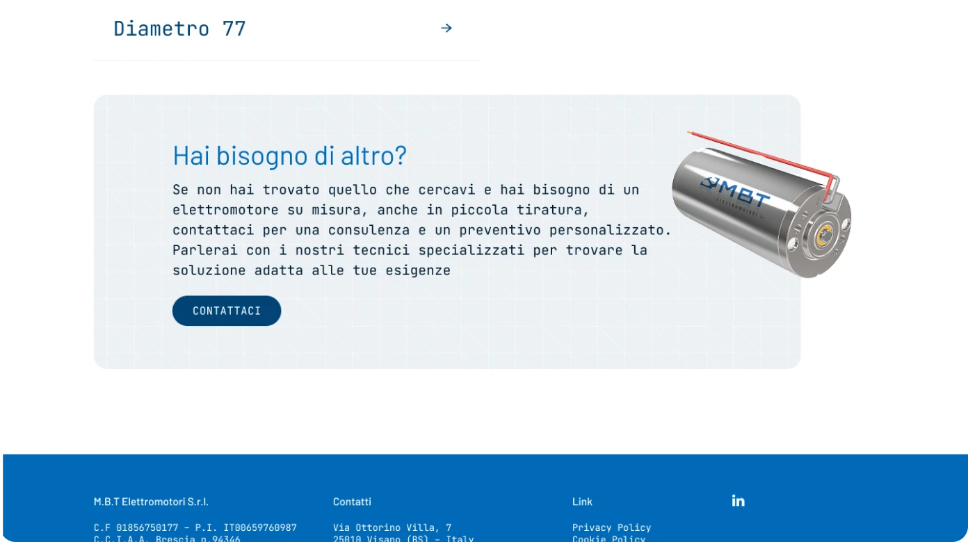 Un progetto essenziale ma strategico, pensato per dare struttura e qualità alla comunicazione online. Novity ha affiancato MBT nella realizzazione di una vetrina digitale solida e credibile, in grado di raccontare competenze, affidabilità e identità industriale con semplicità ed efficacia.